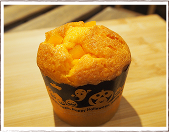 色鮮やかな「かぼちゃのマフィン」(170円)は、11月までの限定メニュー。かぼちゃペーストを加えた生地は美しく、ダイス状のかぼちゃの甘みもgood。少し温めるとより素材感が楽しめそうな、ベジタブルマフィンです。
